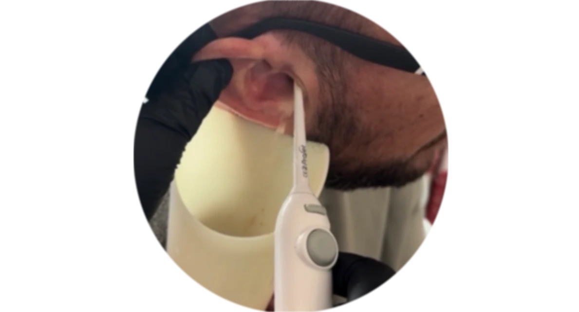 Ear irrigation is a professional ear wax removal technique that uses a low pressure and steady stream of warm water to cleanse the ear canal. This method effectively flushes out the buildup of wax in the ear canal. For those in Melksham, home visits can be arranged for convenience. Digital images are captured before and after the procedure, providing a clear comparison of the results, and it can also be complemented by microsuction ear wax removal if needed.